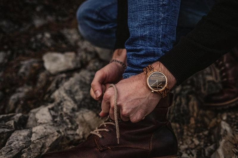 TIGANO Armbanduhr | Unisex Holzuhr | Tigerauge Stone | Nachhaltig | Gold